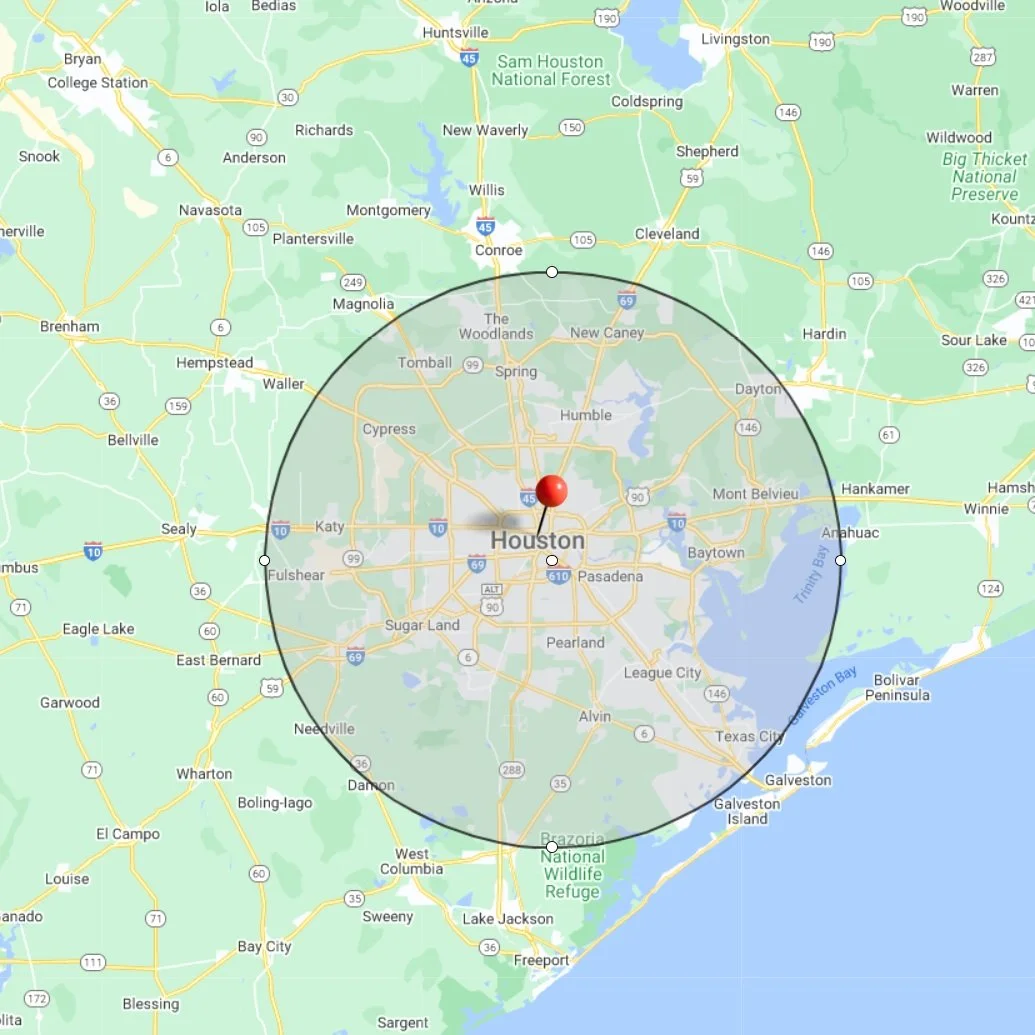 Our service area is approximately an hour from downtown Houston in all directions! If you are unsure if this includes where your property is located, please reach out!