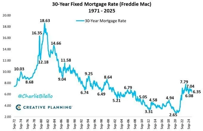 Freddie Mac’s 50-year chart shows today’s rates sit almost exactly in the middle of the historical range. It feels high only because we got used to record lows between 2019 and 2021. In truth, today’s environment is balanced: rates are high enough to curb inflation but low enough to sustain solid property values.