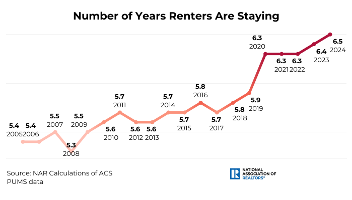 The data backs this up. The average renter tenure continues to increase year over year (see chart below).
